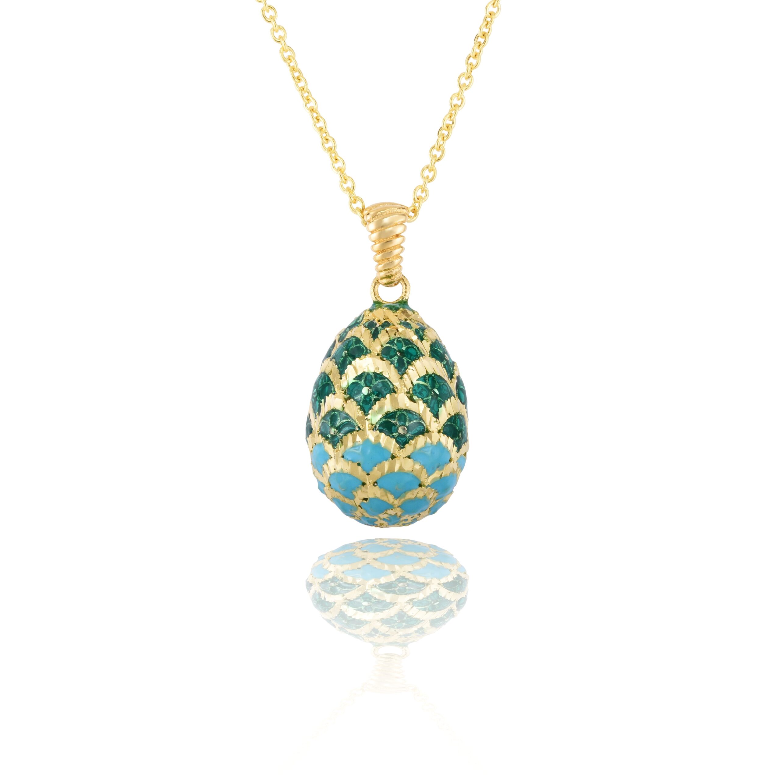 14K Anastasia Enamel Green Egg Necklace with O Clasp