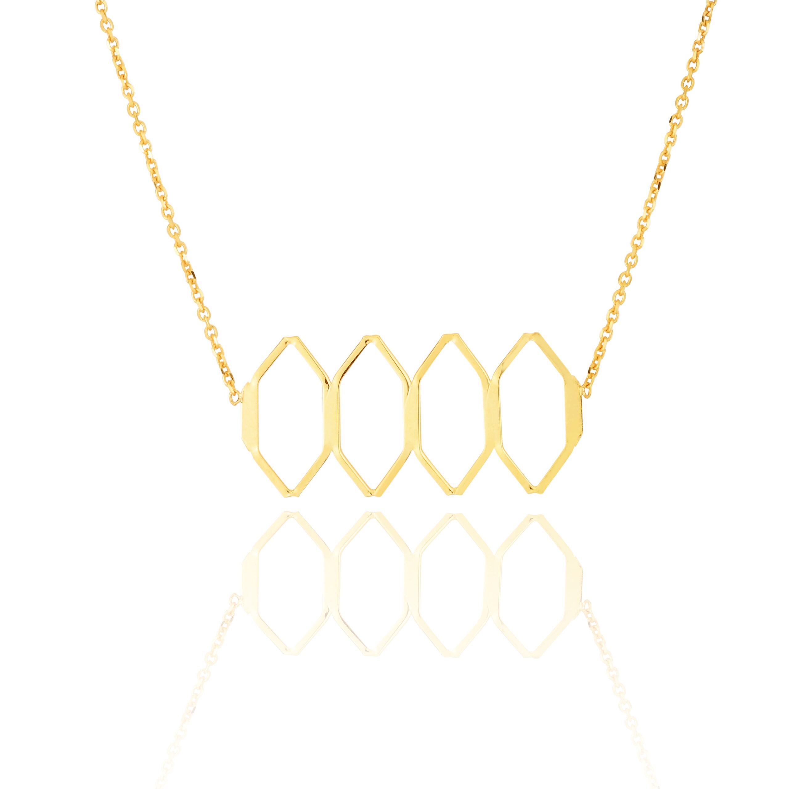 14K Gold Honeycomb Linear Necklace with Lobster Clasp