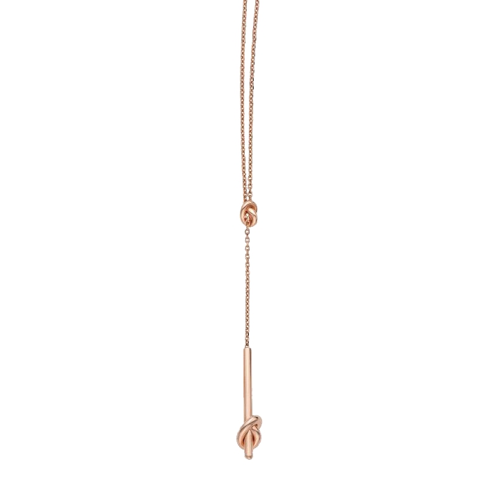 14K Gold 17″ Polished Finish Amore Love Knot Lariat Necklace with Lobster Clasp