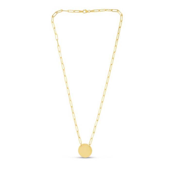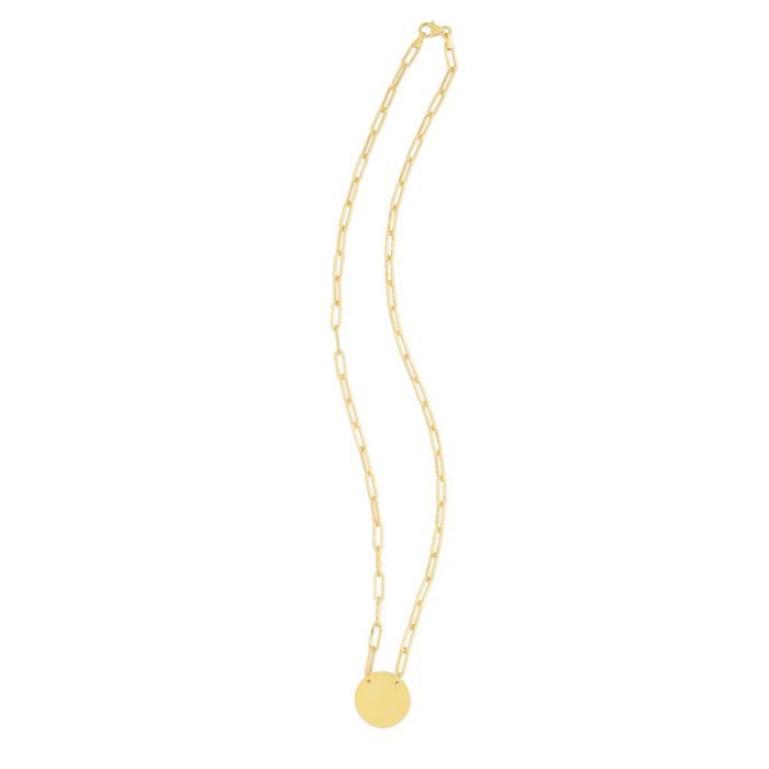 14K Yellow Gold 18″ Disc Circle Necklace on Paperclip Chain