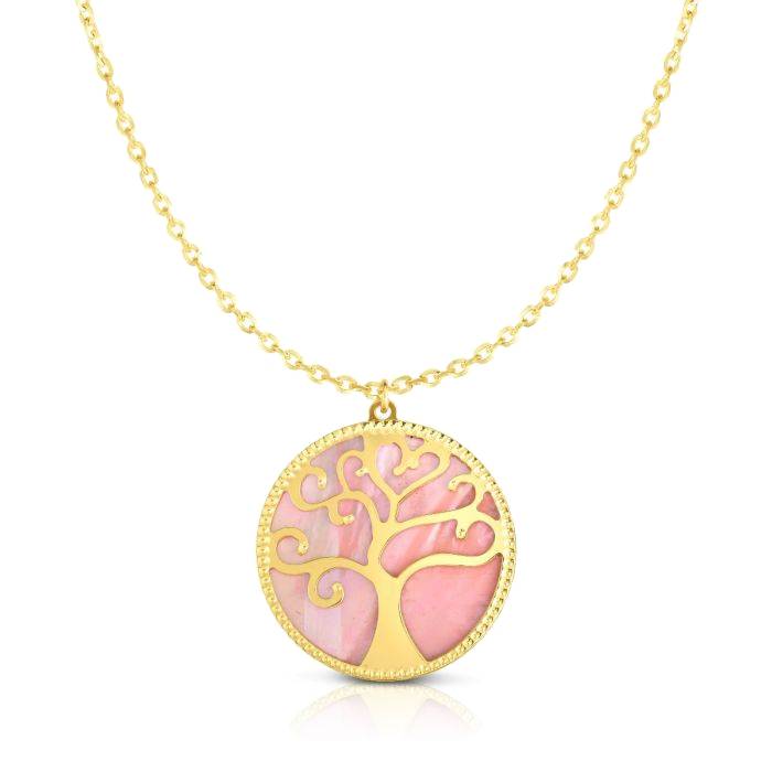 14K Yellow Gold 18″ Mother of Pearl Tree of Life Necklace