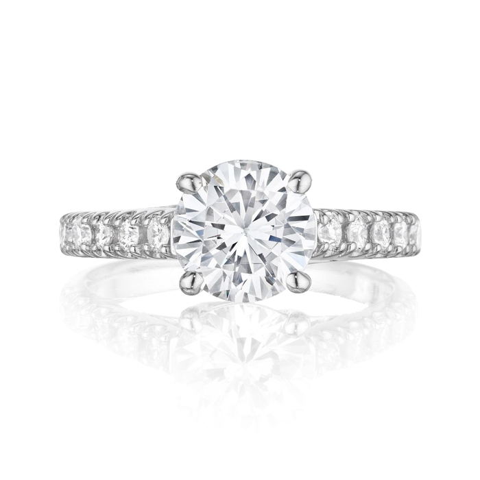 Our LEF070-12 Custom Handmade Elegant single row round diamond wedding ring and diamond accents to compliment your round center stone.