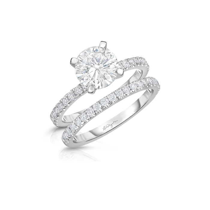 Matching “Micro-pave” modern single row wedding ring with approximately 1/4ct. of diamonds. (1.8mm wide)