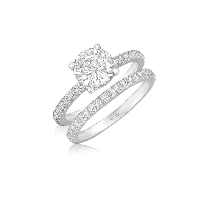 Matching “Micro-pave” modern single row wedding ring with approximately 1/3ct. of diamonds. (1.9mm wide)