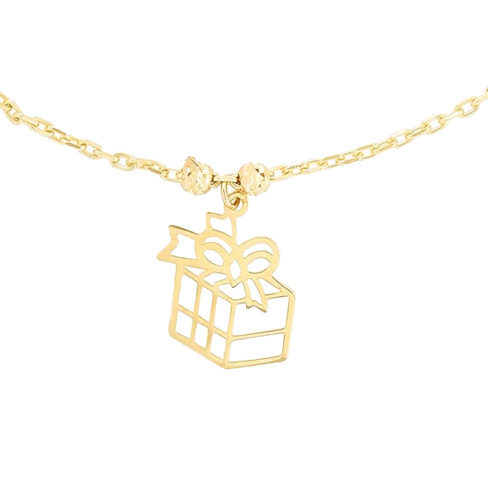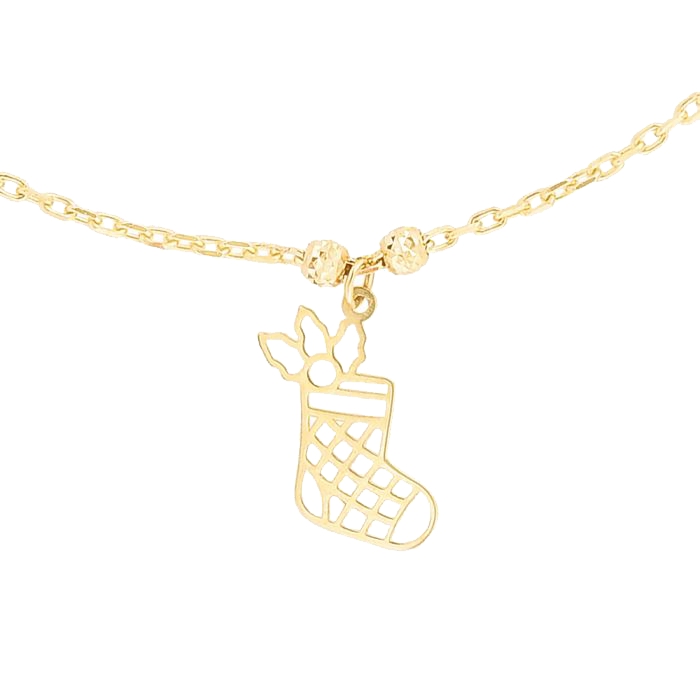 14K Yellow Gold Holiday Charm Bracelet with Extendable Ring at 6.5″ & Closure at 7″