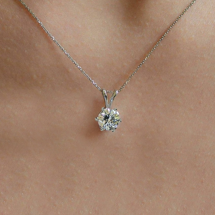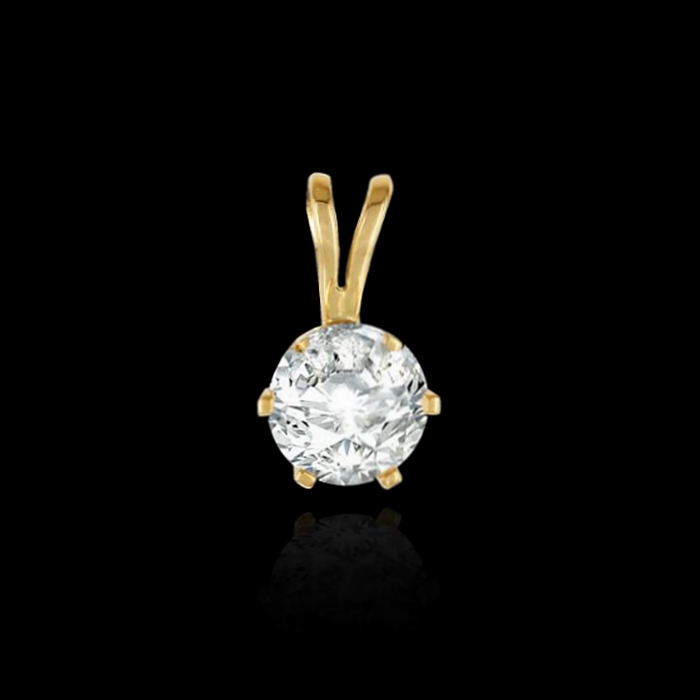 Round Diamond Solitaire Six Prong V Bale Pendant