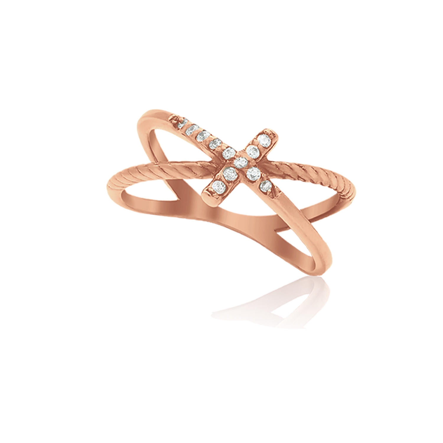 14K Gold Stackable Cross Diamond Ring with Infinity Design