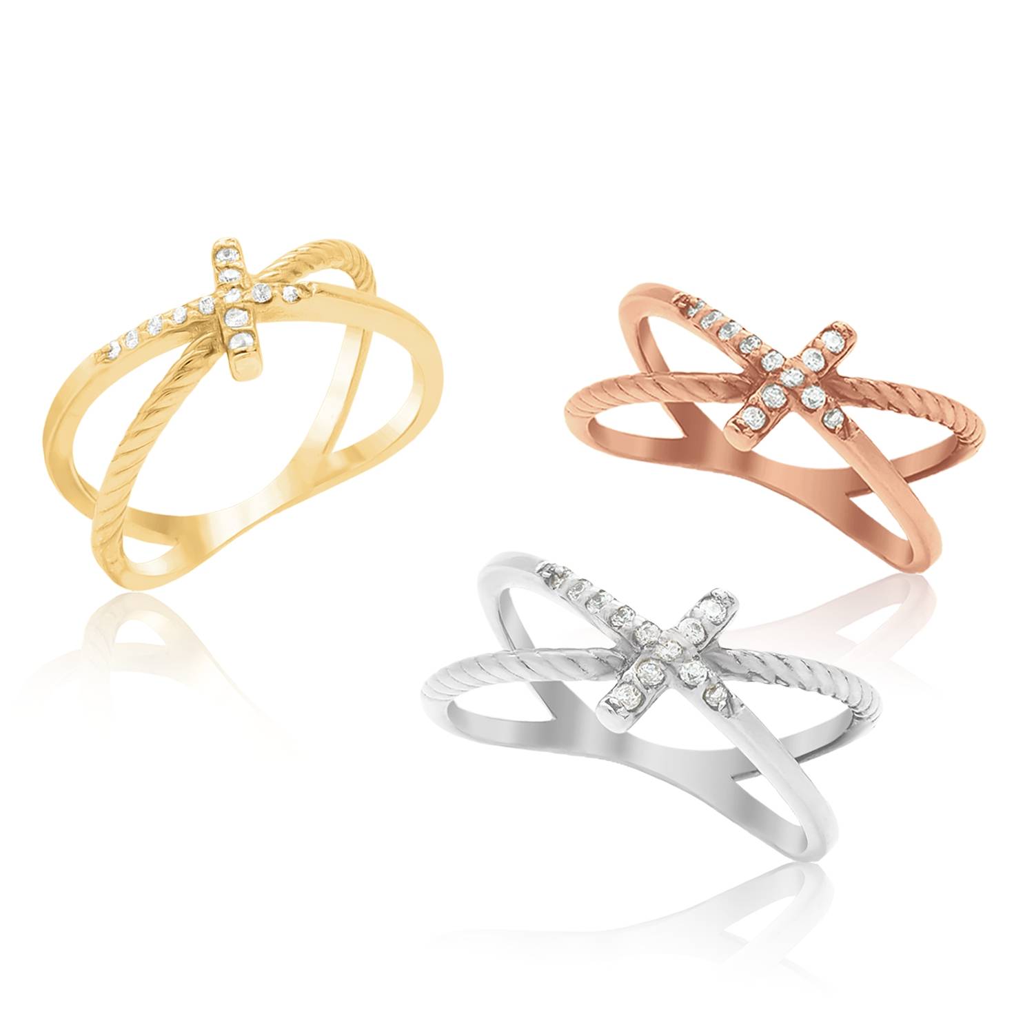 14K Gold Stackable Cross Diamond Ring with Infinity Design
