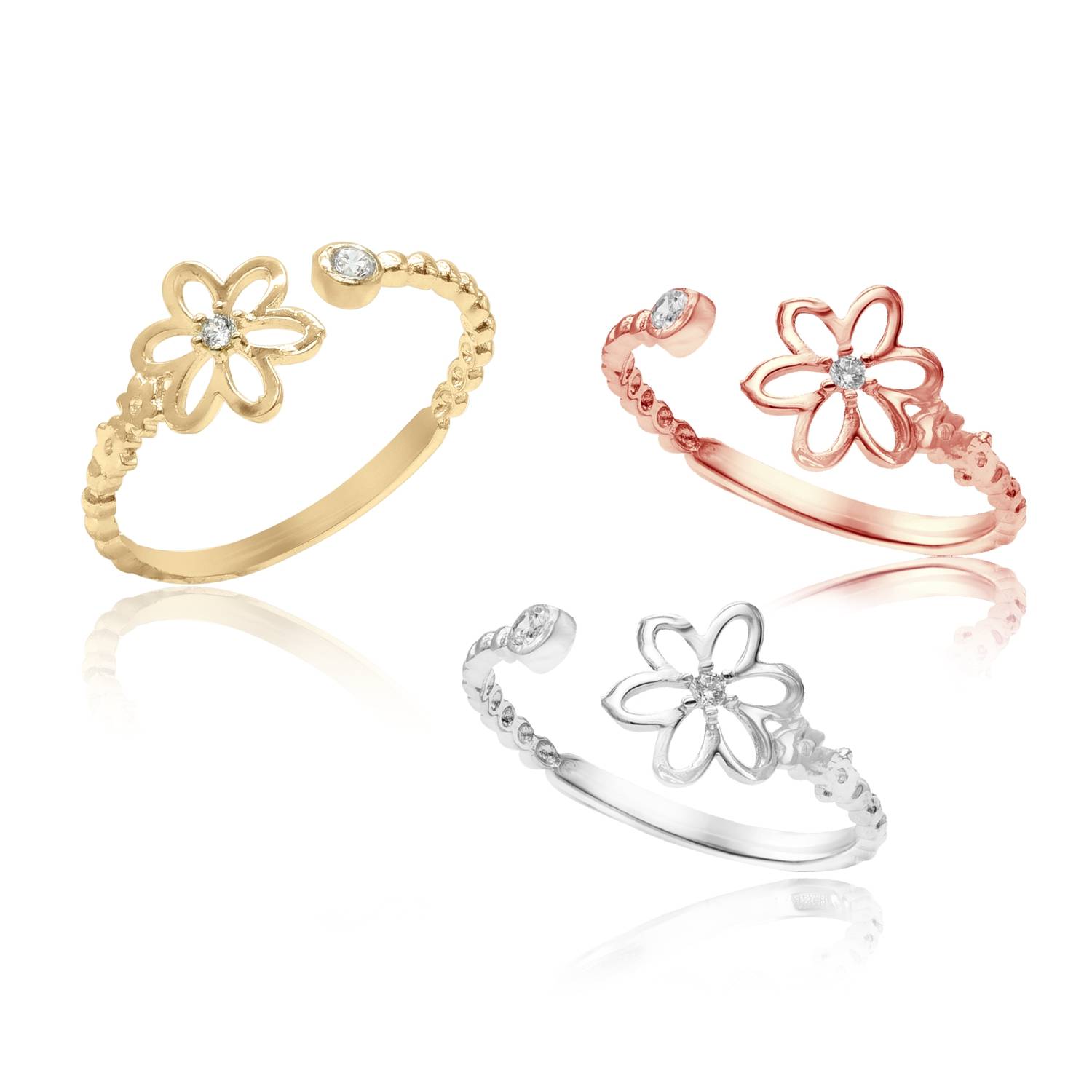STR74-4 14K Gold Stackable Ring with 0.01 c t (TW) and 0.04 ct (TW) Diamonds in Flower Design